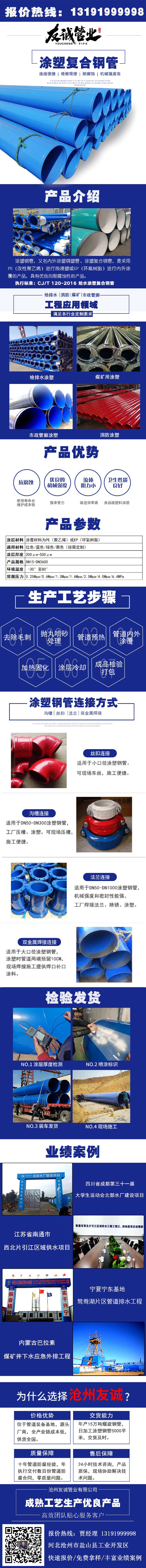 涂塑鋼管,又名鋼塑復合管、涂塑復合鋼管,是采用PE(改性聚乙烯)進行熱浸塑或EP(環氧樹脂)進行內外涂覆的產品,具有優良的耐腐蝕性能。同時涂層本身還具有良好的電氣絕緣性,不會產生電蝕。吸水率低,機械強度高,摩擦系數小,能夠達到長期使用的目的。還能有效的防止植物根系及土壤環境應力的破壞等。連接便捷、維修簡便。